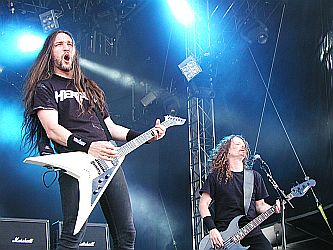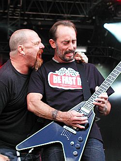 Tom: Yeah, Europe, too. We did Thrash-fest last winter; we went out with Sepultura and Heathen and we did only material from the first three records. We've done Bonded by Blood - only tours in '97 and '98, we came out and played it at Hellfest, the time before this last time we played Hellfest. When you're a band that has so much material to choose from you fight about this all the time. Well, we don't fight, but there's always a discussion about what we're going to play today. Everyone wants to hear something and there's fucking ten albums of stuff and you're trying to support a new album as well. This tour we picked material Rick would be comfortable with; we wanted to play stuff from his era in the band so we leaned a little bit more towards the classic stuff. I myself want to inject more new material in there but our "new" album is two and half years old so even that new material is kind of old. If it was up to me, I'd change the whole set list around all the time but I'm one of five and it's a democracy so we have to vote about these things.