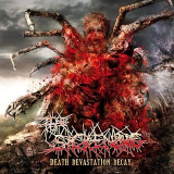 When it comes to brutal death metal I'm really quite picky, mainly enjoying a couple of later period Cannibal Corpse albums. On Death Devastation Decay The Sickness manage to encompass the majority of the conventions of the genre. From the gore-saturated lyrics, the disgusting almost indecipherable vocals, and of course the ratatata drum sound. Hell they even include a cover of "Hammer Smashed Face" so it's hard not to see what these guys are going for. These kind of bands are a dime a dozen, and while Death Devastation Decay remains inoffensive it is decidedly an average album. The only thing edging this from being completely middle of the road is the quality guitar work, which manages to keep the attention throughout with some headbangable riffs. Overall if brutal death metal is your cup of tea your going to find some fun with The Sickening, for the rest I'd say give it a miss. |