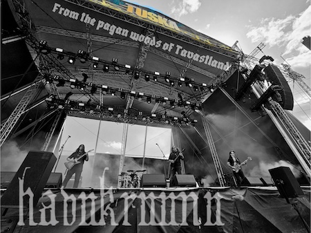 On a partly cloudy but still somewhat blistering summer Sunday at Helsinki's legendary Tuska Festival, The Metal Crypt caught up with two members of Finland's pagan black metal force Havukruunu, a couple of hours after their showtime at the festival. Bassist Humö and drummer Kostajainen took time between sets and chaos to speak with us about their journey through the Nordic metal underground, their creative process, and the raw energy that fuels their uncompromising sound. With the roar of the crowd in the background and the scent of festival spirit thick in the air, the band offered a rare glimpse into the thunder behind their music. Here's what they had to say.