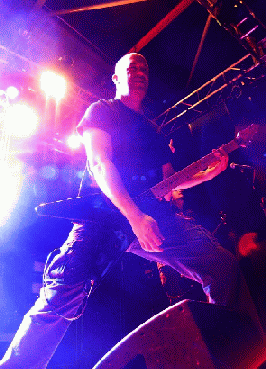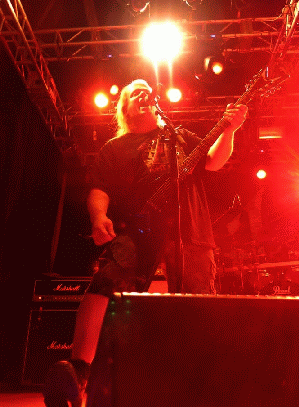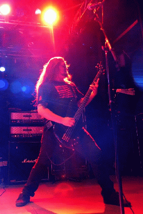 Dallas: Well, we were doing a tour in the US and we had hired him as our lighting engineer. And when things weren't working out with Todd Ellis that we had at the time, it just seemed like kind of the natural thing because a lot of times at the end of the show we would sit in the back of the bus and play guitar and bass guitar back and forth, check this out. Come to find out, he's like a Rush song book on the guitar, he can play all that Alex Lifeson stuff. And he had already had experience playing bass and stuff like that. And after things weren't working out, we just thought it might be a good idea to check it out. And after talking with him, particularly this time, we tried him out and he learned the stuff very quickly. He is very solid, got a nice stage presence, can help out with the vocals as well, he did some vocals. That little scream hanging off in the end of the song "Evil to Cast out Evil", that's him. [*chuckles + imitating scream*]