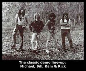 Mike: That's easy to remember. Kam had been kicked out of his mom's house in Orlando, and was staying with an uncle in the town we were in. We had just fired our singer (really, not a singer, but you know). We found out he was around and asked if he wanted to come over and hang out. Well, as things were those days, our guitarist Allen didn't show up, so just Billy and I were there in our practice room with Kam. We started playing "Black Magic", just bass, drums and Kam, then we did "Piranha". Sounded heavy. He was in. Three months later we made the first demo tape.