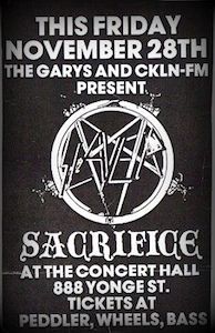 Canadian thrashers Sacrifice, formed in Toronto in 1983, were one of the most respected and largely known bands coming from the country that had its own strong and fertile Speed/Thrash Metal scene back in the eighties–such names as Razor, Voivod, Exciter, Infernäl Mäjesty, Annihilator, Slaughter, Lethal Presence, Cremains, etc. being only a few names mentioned out of this wild and relentless bunch who made their home country proud of among metalheads worldwide.